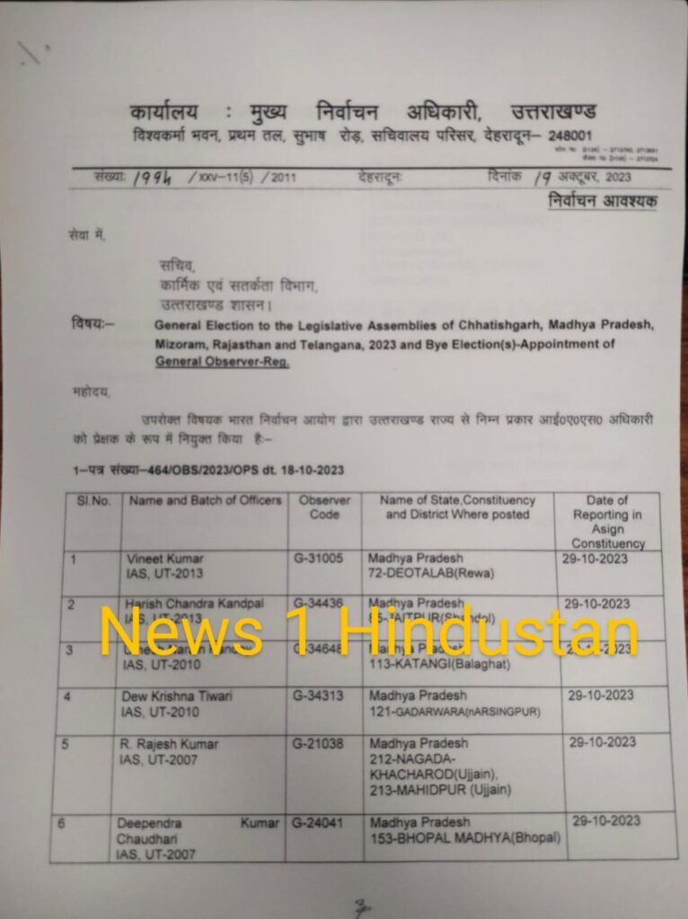 इन 8 IAS अधिकारियों की चुनावी ड्यूटी लगाई गई है। मध्य प्रदेश, छत्तीसगढ़, राजस्थान के विधानसभा चुनाव में यह लोग ड्यूटी करेंगे। यह लोग वहां हो रहे विधान सभा चुनाव में चुनाव ऑब्जर्वर बनाये गए है। किसको – किसको बनाया गया है आब्जर्बर ? आप खुद ही देख ले लिस्ट –