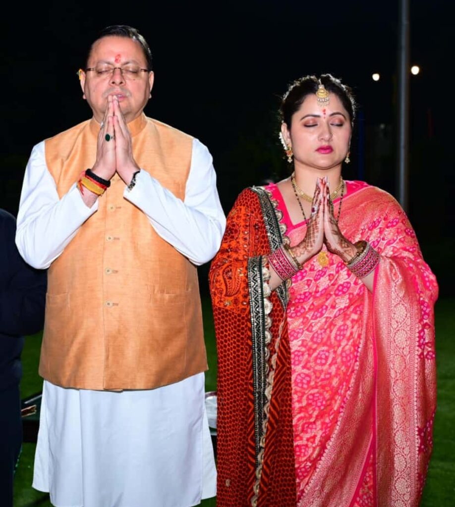 देहरादून। मुख्यमंत्री पुष्कर सिंह धामी ने देर शाम मुख्यमंत्री आवास में अपनी धर्मपत्नी श्रीमती गीता धामी के साथ करवा चौथ का व्रत पारंपरिक श्रद्धा एवं उत्साह के साथ मनाया। मुख्यमंत्री दंपत्ति ने विधि-विधानपूर्वक पूजा-अर्चना कर भगवान शिव-पार्वती से समस्त प्रदेशवासियों के सुख, शांति, स्वास्थ्य एवं समृद्धि की कामना की।