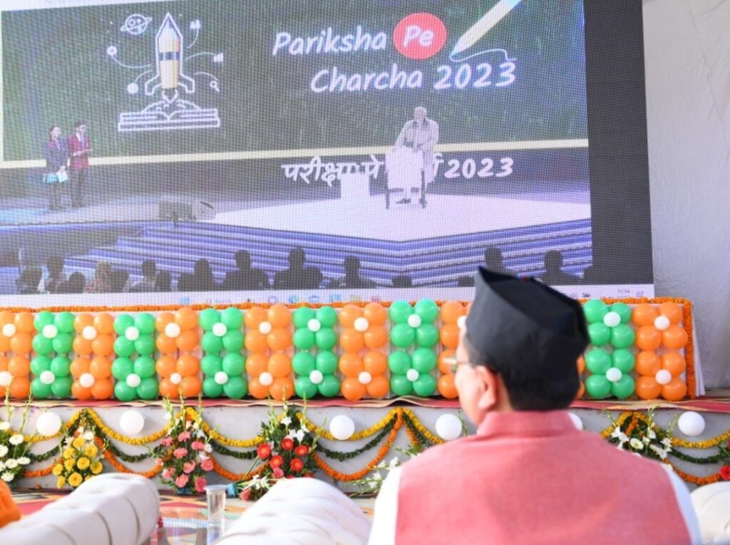 देहरादून। प्रधानमंत्री नरेन्द्र मोदी ने दिल्ली के तालकटोरा स्टेडियम से ‘परीक्षा पे चर्चा- 2023’ कार्यक्रम में देश के छात्र-छात्राओं, अध्यापकों एवं अभिभावकों से संवाद किया। मुख्यमंत्री पुष्कर सिंह धामी ने लक्ष्मण विद्यालय इंटर कॉलेज, पथरीबाग में स्कूली छात्र-छात्राओं के साथ प्रधानमंत्री नरेन्द्र मोदी के ‘परीक्षा पर चर्चा- 2023’ कार्यक्रम में प्रतिभाग किया।