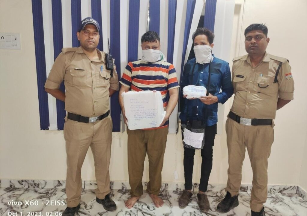 l. गिरफ्तार अभियुक्त – 1- भारत पखराज पुत्र पुखराज चौधरी उम्र 34 वर्ष निवासी फ्लैट नम्बर 105 सर्पलोक बिल्डिंग स्वराज जी कम्पाउण्ड जिला अहमदाबाद गुजरात 2- परेश जैन पुत्र पारसमल जैन निवासी वलसाड गुजरात उम्र 42 वर्ष.. बरामदगी-1.Nitrazepam tablet IPNITRAVET-10….300 tablet2.codeine phosphate… 20 bottle..3. Mobile phone…10 (विभिन्न कंपनी )4.ATM cards…. 19 (विभिन्न बैंक ) पुलिस टीम- 1. उ0नि0 इंद्र सिंह 2-उ0नि0 मनीषा नेगी 3- का0 दीपक दानू 4- का0 गजेन्द्र5. का0 संतोष Rawat 6. का 0 सुरेंद्र चैहान टीम कोतवाली रानीपुर-1. Si अनुरोध व्यास 2. Hc प्रदीप कुमार 3. का 0 दिनेश, गोपाल, अमित राणा