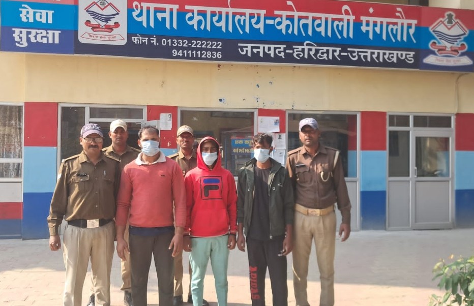 जगन्य अपराध में नामजद अभियुक्तों की गिरफ्तारी हेतु एसएसपी हरिद्वार द्वारा दिए गए कड़े दिशा निर्देशों के क्रम में गठित पुलिस टीम द्वारा सभी संभावित स्थानों में दबिश देते हुए 48 घंटे के भीतर 03 अभियुक्तों को लंढोरा से धर दबोचा गया। गिरफ्त में आए अभियुक्तों के कब्जे से घटना में प्रयुक्त लाठी डण्डे भी बरामद किए गए।