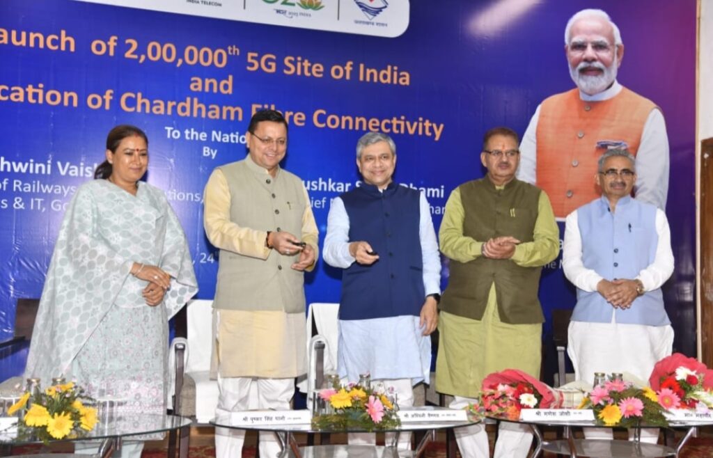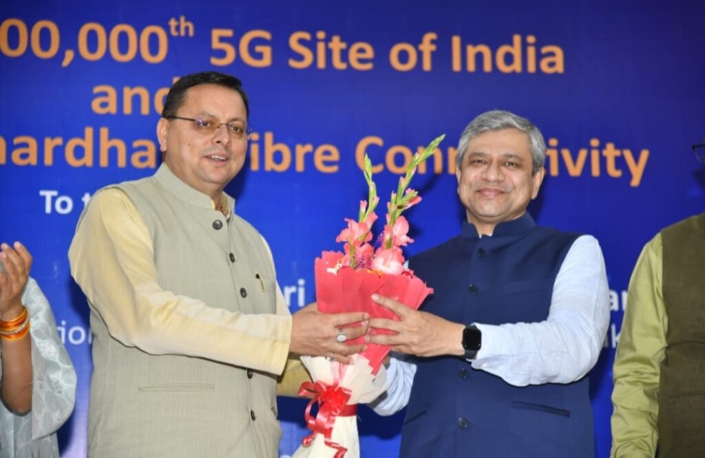 इस अवसर पर केंद्रीय मंत्री अश्विनी वैष्णव ने कहा कि प्रधानमंत्री मोदी जी ने अक्टूबर 2022 को देश में 5-जी की यात्रा का शुभारंभ किया। देश ने टेलीकॉम क्रांति के विभिन्न स्वरूप देखे हैं प्रधानमंत्री नरेंद्र मोदी के नेतृत्व में टेलीकॉम क्षेत्र में अभूतपूर्व कार्य किए जा रहे हैं। यह समय टेलीकॉम क्षेत्र का स्वर्णिम काल है। यह हमारे लिए सौभाग्य का विषय है कि हम चार धामों को भी 5 जी और फाइबर कनेक्टिविटी से भी जोड़ रहे हैं। देश से लाखों की संख्या में लोग यहां आते हैं। मुख्यमंत्री श्री धामी जी के विशेष आग्रह पर चार धाम को ऑप्टिकल फाइबर एवं 5 जी से जोड़ने का कार्य शुरू किया गया था। टेलीकॉम क्षेत्र में होने वाले कार्यों में मुख्यमंत्री धामी का हमेशा सहयोग मिला है। आज देश में हर एक मिनट में 5 जी की साइट रेडियेट हो रही है।केंद्रीय मंत्री अश्विनी वैष्णव ने कहा कि आज भारत 5जी के क्षेत्र में दुनिया की बराबरी कर रहा है परंतु 6 जी के क्षेत्र में भारत दुनिया का नेतृत्व करेगा। आज विश्व में भारत की छवि एक नई टेक्नोलॉजी हब के रूप में उभर रही है भारत टेक्नोलॉजी के क्षेत्र में निरंतर विश्व का नेतृत्व कर रहा है। 6 जी के लिये देश के प्रबुद्ध ब्रेन को 100 पेटेंट मिल चुके हैं।ऋषिकेश कर्णप्रयाग रेलवे लाइन पर बोलते हुए मंत्री अश्विनी वैष्णव ने कहा कि यह प्रोजेक्ट नए भारत का एक बड़ा उदाहरण है। यह रेल लाइन अत्यधिक आधुनिक टेक्नोलॉजी पर आधारित हिमालयन टनलिंग मेथड पर अधारित है। इस रेल परियोजना में प्रकृति का विशेष ध्यान रखा जा रहा है हम प्रकृति के साथ आगे बढ़कर विकास करने पर विश्वास करते हैं। प्रधानमंत्री श्री नरेंद्र मोदी ने हमेशा उत्तराखंड के लिए तत्परता से कार्य किया है। इस दौरान कैबिनेट मंत्री गणेश जोशी, श्रीमती रेखा आर्या, मेयर सुनील उनियाल गामा, विधायक मुन्ना सिंह चौहान, खजान दास, श्रीमती सविता कपूर, डी.जी. टेलिकॉम एस.के. जैन, सचिव शैलेश बगौली एवं अन्य लोग मौजूद रहे।