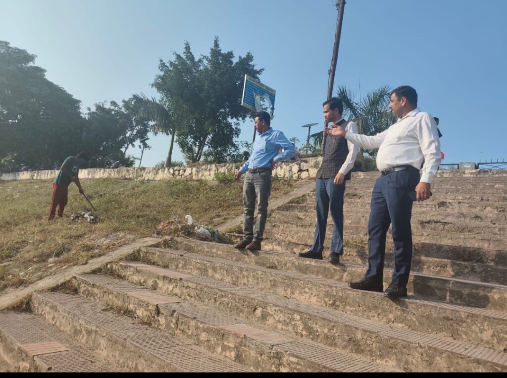 हरिद्वार। आगामी छठ पूजा के मद्देनज़र नगर निगम हरिद्वार ने नगर क्षेत्र के सभी घाटों पर सफाई व्यवस्था सुनिश्चित करने हेतु विशेष अभियान प्रारंभ किया है। दिनांक 25 अक्टूबर को उप नगर आयुक्त दीपक गोस्वामी तथा सहायक नगर आयुक्त ऋषभ उनियाल द्वारा नगर क्षेत्र के घाटों का निरीक्षण किया गया, जिसमें सफाई व्यवस्था की स्थिति का मूल्यांकन किया गया।