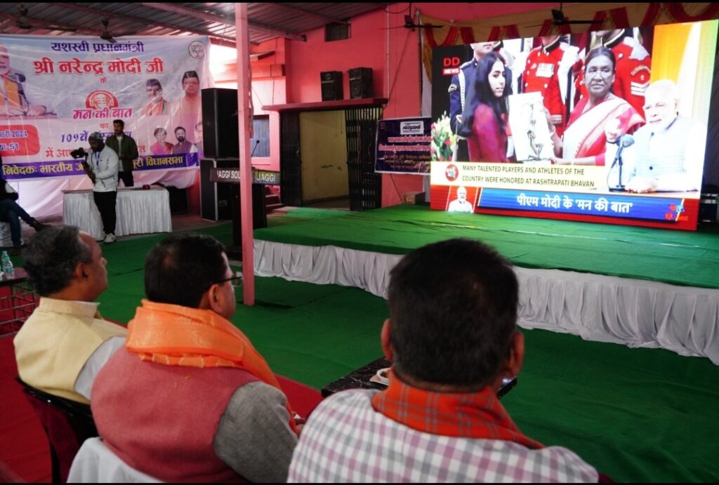 देहरादून।मुख्यमंत्री पुष्कर सिंह धामी ने जाखन, देहरादून में प्रधानमंत्री नरेन्द्र मोदी के मन की बात कार्यक्रम का 109 वां संस्करण सुना। मुख्यमंत्री ने कहा कि मन की बात कार्यक्रम के माध्यम से प्रधानमंत्री नरेन्द्र मोदी द्वारा देशवासियों के ऐसे प्रयासों को सामने लाया जा रहा है,जो निस्वार्थ भावना के साथ समाज और देश को सशक्त करने का काम कर रहे हैं। प्रधानमंत्री ने आज पद्म सम्मान प्राप्तकर्ताओं का जिक्र किया। पद्म पुरस्कार पाने वाले अधिकतर लोग, अपने-अपने क्षेत्र में काफी अनूठे काम कर रहे हैं। महिला सशक्तिकरण की दिशा में प्रधानमंत्री श्री नरेन्द्र मोदी के नेतृत्व में देश में काफी तेजी से कार्य हुए हैं। इसी का परिणाम है कि आज हमारी नारी शक्ति हर क्षेत्र में सराहनीय कार्य कर रही हैं।