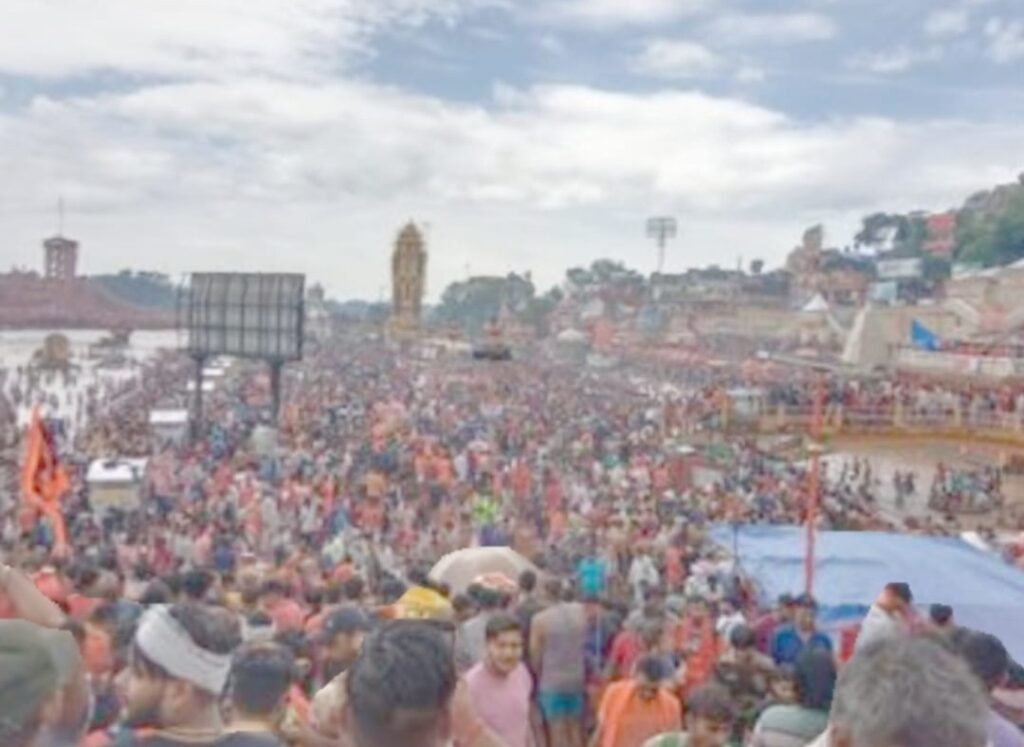 हर की पैड़ी के पास उमड़ा कांवड़ियों का सैलाब,बहादराबाद में पूरे दिन लगा रहा जाम