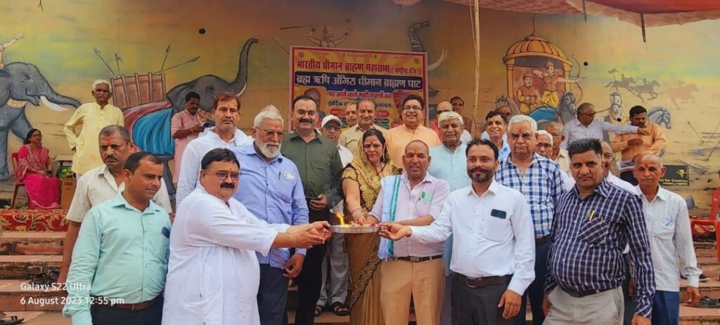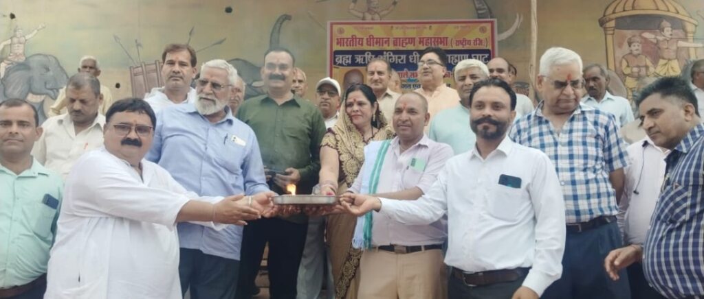हरिद्वार। ऋषिकुल हरिद्वार के पास “भारतीय धीमान ब्राह्मण महासभा” की संगोष्ठी का आयोजन किया गया। जिसमें “ब्रह्मऋषि अंगिरा धीमान ब्राह्मण घाट” का लोकार्पण किया गया। जिसमे भारतीय धीमान ब्राह्मण महासभा के राष्ट्रीय अध्यक्ष सुंदर लाल धीमान के द्वारा सर्वप्रथम यज्ञ किया गया और भगवान विश्वकर्मा एवं अंगिरा जी की पूजा की गई, और विश्वकर्मा आरती के साथ यज्ञ का समापन किया गया। इस अवसर पर महासभा के संस्थापक ओर विश्वकर्मा वैदिक पत्रिका के सम्पादक केदारनाथ धीमान ने सभी धीमान समाज तथा समस्त विश्वकर्मा समाज और महासभा के पदाधिकारियोंको बधाई दी और सभी आभार व्यक्त किया, तत्पश्चात सभी ने अपने विचार प्रस्तुत किए।