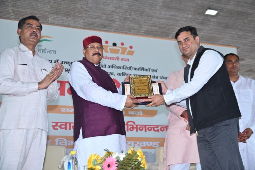 हरिद्वार। उत्तराखण्ड मंत्री लोक निर्माण, पर्यटन, सिंचाई, लघु सिंचाई, पंचायती राज, ग्रामीण निर्माण, संस्कृति, जलागम प्रबन्धन एवं भारत नेपाल उत्तराखण्ड नदी परियोजनायें सतपाल महाराज ने बृहस्पतिवार को प्रेमनगर आश्रम में पंचायती राज विभाग द्वारा आयोजित जनपद हरिद्वार में सम्पन्न त्रि-स्तरीय पंचायत चुनाव-2022 में उत्कृष्ट सेवा देने वाले अधिकारियों/कार्मिकों एवं चुनाव में विजयी जिला पंचायत अध्यक्ष, उपाध्यक्ष, सदस्य एवं प्रमुख, ज्येष्ठ प्रमुख, कनिष्ठ प्रमुख क्षेत्र पंचायत को सम्मानित करने हेतु आयोजित कार्यक्रम में प्रतिभाग किया।