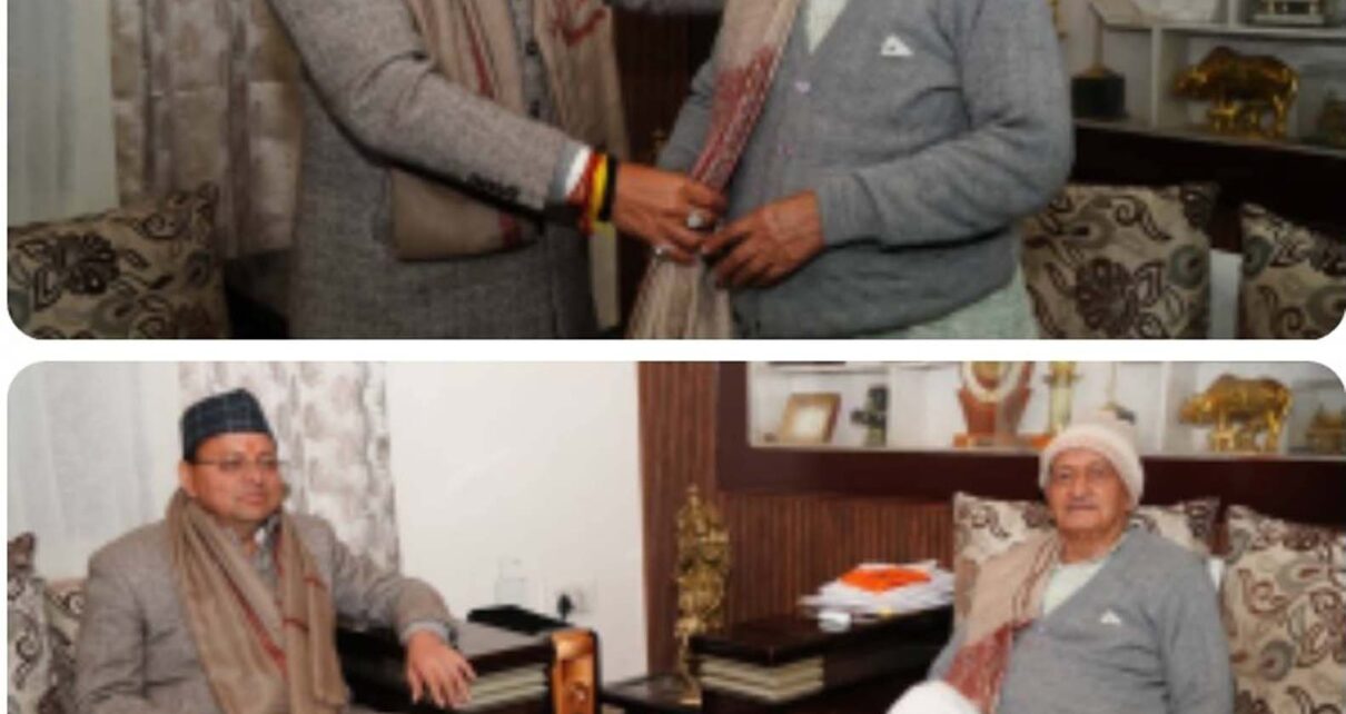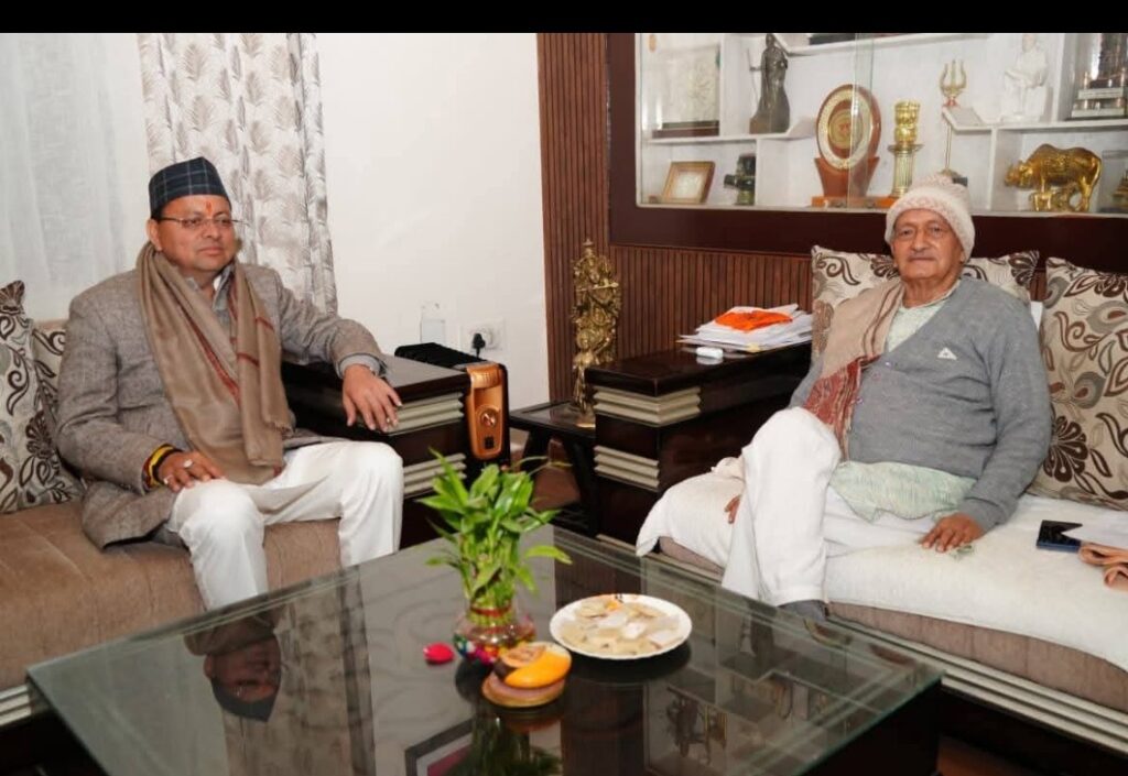 देहरादून। मुख्यमंत्री पुष्कर सिंह धामी ने उत्तराखंड के पूर्व मुख्यमंत्री एवं महाराष्ट्र के पूर्व राज्यपाल श्री भगत सिंह कोश्यारी से उनके डिफेंस कॉलोनी, देहरादून स्थित आवास पर शिष्टाचार भेंट की।