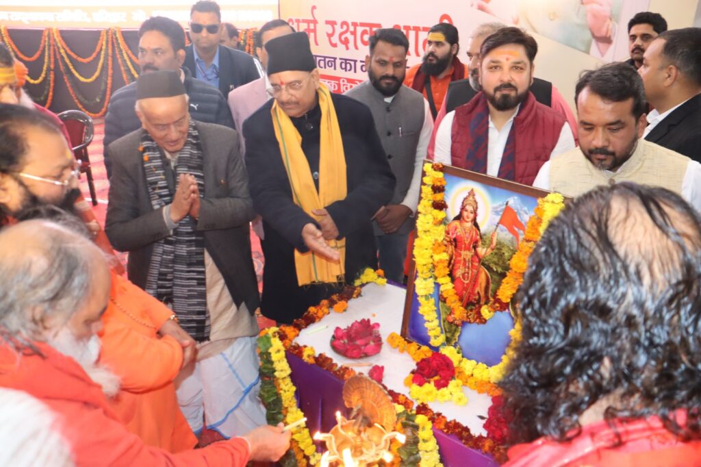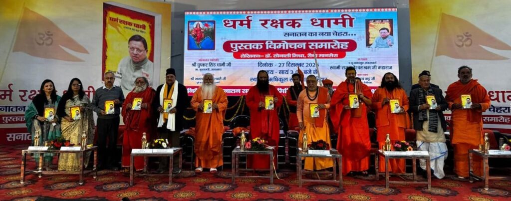 हरिद्वार। राष्ट्र संचालन के लिए धर्म नीति का होना आवश्यक है, धर्म की रक्षा होगी तभी राष्ट्र सुरक्षित रहेगा। राष्ट्र-राज्य की सुरक्षा को चुनौती दे रही जिहादी मानसिकता को समाप्त करने में जिस तरह मुख्यमंत्री पुष्कर सिंह धामी ने ताबड़ तोड़ कार्यवाही की है, उसे डॉ. सोनाली मिश्रा व रीना मानसेरा ने लिपिबद्ध कर सहरानीय कार्य किया है। यह उद्गगार सनातन सद्भावना समिति द्वारा आयोजित कार्यक्रम में जगतगुरु शंकराचार्य स्वामी राजराजेश्वराश्रम महाराज ने धर्म रक्षक धामी पुस्तक के विमोचन अवसर पर ऋषिकुल सभागार में दिए।