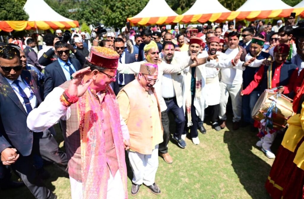 Big News CM Dhami Dehradun Holi colours arrived at the CM residence Slider States Uttarakhand