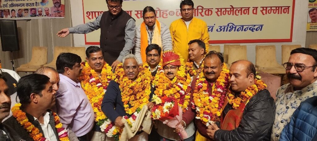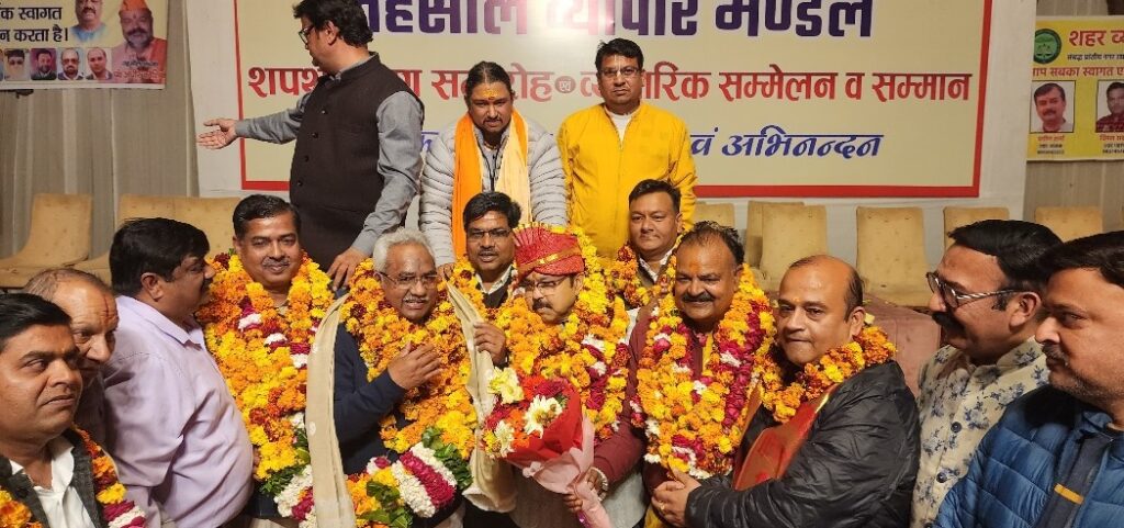 कार्यक्रम में नगर विधायक मदन कौशिक एवं रानीपुर विधायक आदेश चौहान भी मुख्य अतिथी के तौर पर शामिल हुए और नवनिर्वाचित कार्यकारिणी को शुभकामनाएं दीं। श्री गंगा सभा के अध्यक्ष नितिन गौतम ने कहा कि व्यापार मंडल समाज और व्यापारियों के हितों की सशक्त आवाज है। नई कार्यकारिणी व्यापारियों की समस्याओं को प्राथमिकता के साथ उठाकर संगठन को और मजबूत बनाएगी। विधायक मदन कौशिक एवं आदेश चौहान ने कहा कि व्यापार मंडल समाज की आर्थिक रीढ़ है और जनप्रतिनिधि हमेशा व्यापारियों के साथ खड़े रहेंगे। पूर्व दर्जाधारी संजय पालीवाल ने कहा कि तहसील व्यापार मंडल कार्यकारिणी जमीनी स्तर पर व्यापारियों के अधिकारों के लिए मजबूती से कार्य करेगी। संगठन की एकजुटता ही उसकी सबसे बड़ी ताकत है। तहसील अध्यक्ष पंडित अधीर कौशिक ने कहा कि व्यापारियों के विश्वास पर पूरी तरह खरा उतरने का प्रयास करेंगे और सभी पदाधिकारियों को साथ लेकर संगठन को नई दिशा देंगे। प्रांतीय नगर उद्योग व्यापार मंडल के जिलाध्यक्ष विशाल गर्ग एवं सुभाष कश्यप ने कहा कि ज्वालापुर इकाई की नई कार्यकारिणी संगठन को मजबूती देगी और व्यापारी हितों को सर्वाेपरि रखते हुए कार्य करेगी। उन्होंने कहा कि संगठन में पहली बार महिला शक्ति को भी दायित्व दिए गए हैं। जल्द ही पूरे जिले में संगठन का विस्तार किया जाएगा। इस अवसर पर प्रांतीय नगर उद्योग व्यापार मंडल के प्रदेश उपाध्यक्ष शिवकुमार कश्यप, प्रदेश सचिव मयंक मूर्ति भट्ट, शहर अध्यक्ष प्रवीण शर्मा, शहर महामंत्री विमल सक्सेना, जिला महामंत्री अश्विनी शर्मा, योगेश भारद्वाज, पूर्व मेयर प्रतिनिधि अशोक शर्मा, मनोज झा, वैध एमआर शर्मा, प्रवीण सिंघल, पंडित पवन कृष्ण शास्त्री, जगदीशलाल पाहवा, किशन बजाज सहित बड़ी संख्या में व्यापारी व गणमान्य लोग मौजूद रहे।