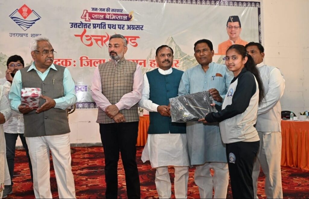इस अवसर पर मुख्य अतिथियों द्वारा सूचना एवं लोकसंपर्क विभाग द्वारा प्रकाशित विकास पुस्तिका संकल्प से सिद्धि: विकसित उत्तराखंड बेमिसाल विकास और नई पहल के चार वर्ष का विमोचन किया तथा विभिन्न विभागों की योजनाओं के पात्र लाभार्थियों को योजना से लाभान्वित किया गया,जिसमें सहकारिता विभाग द्वारा पंडित दीनदयाल उपाध्याय सहकारी किसान योजना के अन्तर्गत 50 लाभार्थियों को 56,13,000 धनराशि के चेक वितरित किए गए।लघु उद्योग में हथकरघा एवं हस्तशिल्प में जिला स्तर पर पुरस्कार प्राप्त करने वाले प्रथम एवं द्वितीय स्थान प्राप्त करने वाले 14 लोगो को प्रशस्ति पत्र देकर सम्मानित किया गया तथा बाल विकास विभाग द्वारा 40 महिलाओं को महालक्ष्मी किट वितरित किए गए तथा समाज कल्याण विभाग द्वारा 09 दिव्यांगजनो को बैसाखी, झड़ी और व्हील चेयर वितरित किए गए।