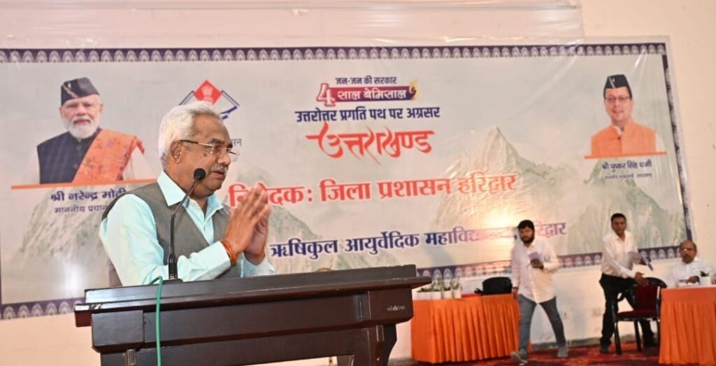 हरिद्वार। राज्य सरकार के चार वर्ष पूर्ण होने के अवसर पर जन – जन की सरकार चार साल बेमिसाल कार्यक्रम ऋषिकुल आयुर्वेदिक महाविद्यालय ऑडिटोरियम में कार्यक्रम अयोजित किया गया,जिसमें मुख्य अतिथि कैबिनेट मंत्री मदन कौशिक एवं उपस्थित अतिथियों ने दीप प्रज्वलित कर कार्यक्रम का शुभारंभ किया।