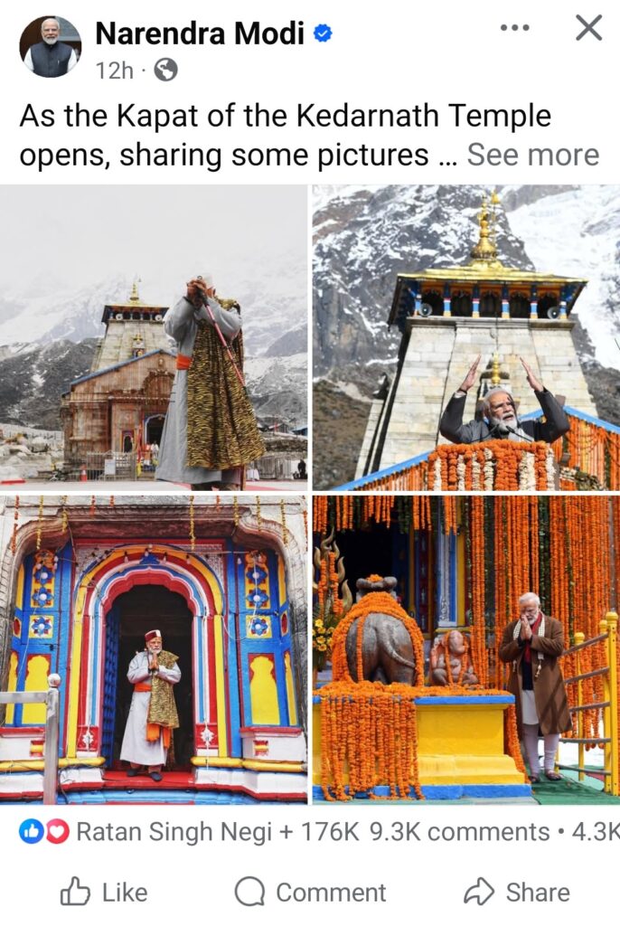 बाबा केदार के धाम में गूंजता “हर हर महादेव” का उद्घोष, प्रधानमंत्री की इस श्रद्धाभिव्यक्ति के साथ और अधिक भावपूर्ण हो उठा है, और देशभर के श्रद्धालुओं में भक्ति का उत्साह नई ऊंचाइयों पर पहुंच रहा है।