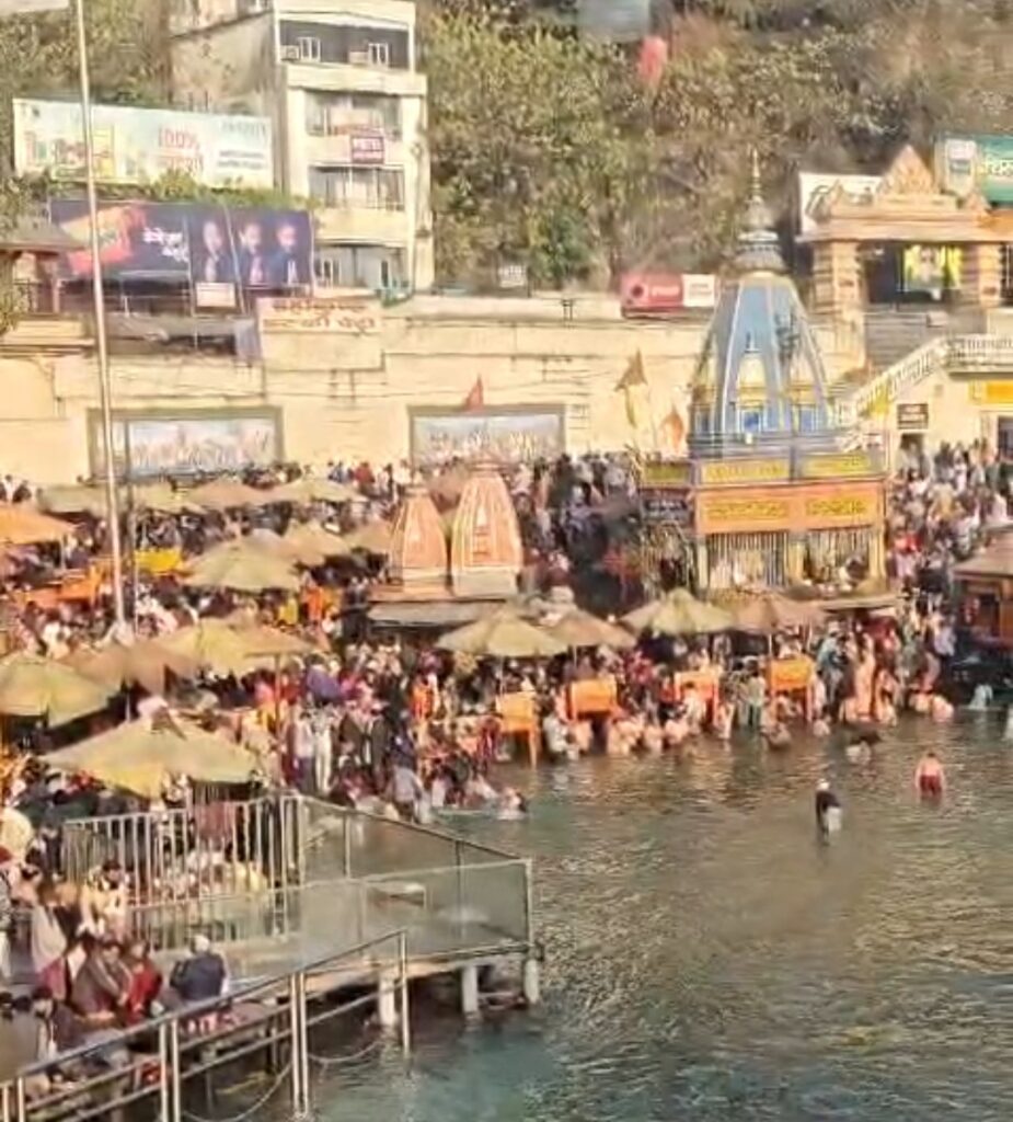 हरिद्वार। मौनी अमावस्या के पावन अवसर पर हर की पैड़ी, हरिद्वार में श्रद्धालुओं की भारी भीड़ उमड़ी। कड़ाके की ठंड के बावजूद भक्तों की आस्था के आगे मौसम भी हारता नजर आया और प्रातः काल से ही गंगा स्नान हेतु श्रद्धालुओं की भारी संख्या हर की पैड़ी पर देखने को मिली।