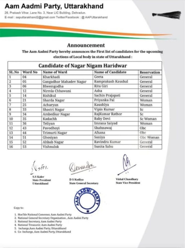 जबकि आप ने 16 वार्डों के पार्षदों के नामो की घोषणा कर दी है। किसको किस वार्ड से किस पार्टी से टिकट दिया गया आप खुद ही देख ले लिस्ट –