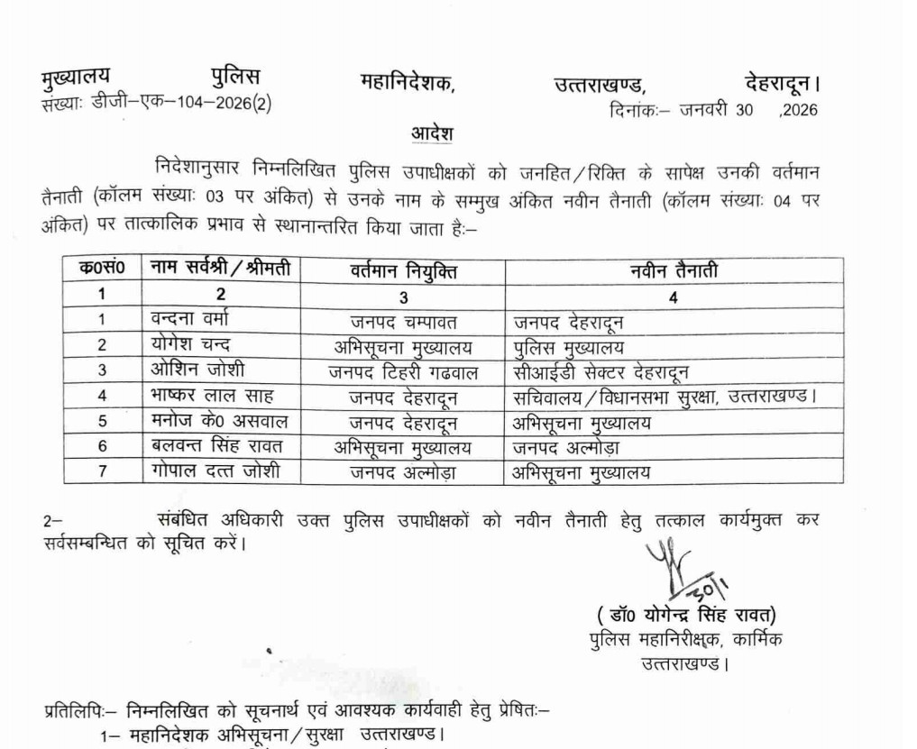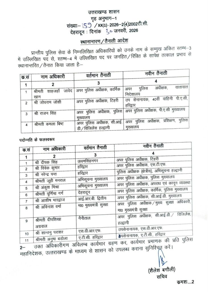 ( ब्यूरो ,न्यूज़ 1 हिन्दुस्तान ) देहरादून। उत्तराखण्ड शासन ने देर शाम 22 ASP सहित CO’s के कार्यक्षेत्र में बड़ा परिवर्तन किया है। किसको कहा से कहा भेजा गया है ? आप खुद ही देख ले लिस्ट –