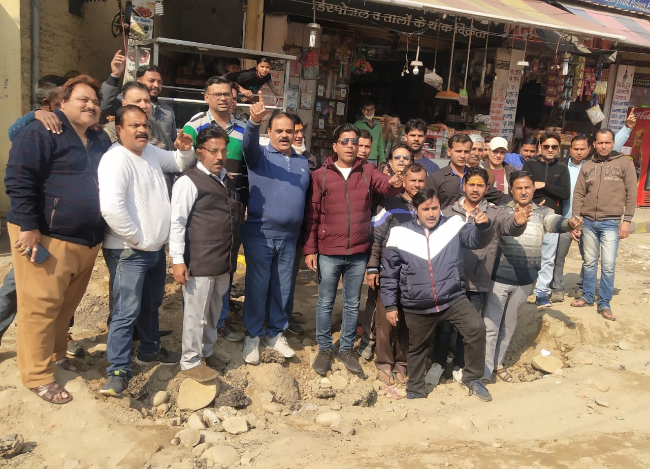 पानी की आपूर्ति बाधित हो रही है लेकिन कार्यदायी संस्था अनियोजित तरीके से लगातार आमजनमानस को परेशान करने का कार्य जल्दबाजी के चक्कर में कर रही है हम जिला प्रसाशन से मांग करते है कि ऐसी संस्था को फटकार लगाते हुए पहले किये गड्डो को बंद करवाये उसके बाद नए कार्य शुरू हो साथ ही धूल मिट्टी से निजात दिलवाने को कच्चा तारकोल डलवाकर सड़को की मरम्मत करवाये। आने वाले समय में शिवरात्रि का मेला भी आ रहा है जिसमे शिवभक्तों को भी परेशानी उठानी पड़ेगी।। विरोध जताने वालो में मुख्य रूप से महामंत्री दीपक मेहता, प्रीतम सिंह, सोनू सुखीजा, पंकज सुखीजा,विनोद गिरी, आकाश पूरी, अशोक वर्मा, विधुर , शिवदत्त,धर्मपाल प्रजापति, विशाल मलिक, राजेश शर्मा, योगेश अरोड़ा,राजू कुमार, भूदेव शर्मा,बुद्धि सिंह नेगी, शिप्पी भसीन, रवि कुमार,राजू सेठी,गणेश शर्मा, श्रवण कुमार,पारस कुमार उपास्थि रहे।
